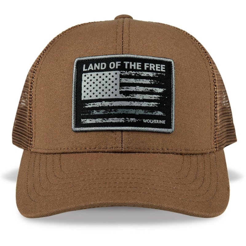 Show off your country's love with the Wolverine Adults' Land of the Free Heavy Duty Canvas Adjustable Trucker Cap. The high-performance cotton construction offers a soft feel, and the moisture-wicking sweatband design helps you stay dry. The mesh back panels offer a ventilated feel, and the Land of the Free logo patch adds a sleek look. Wolverine Adults' Land of the Free Heavy Duty Canvas Adjustable Trucker Cap Chestnut - Work Headwear/Accessories at Academy Sports