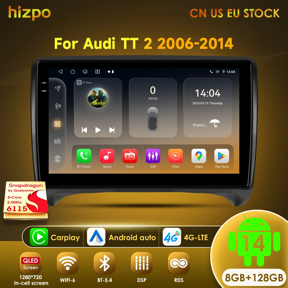 Hizpo Carplay+Auto 8G 128G Android 13 Radio GPS For Audi TT MK2 8J 2006-2014 Car Multimedia Player…