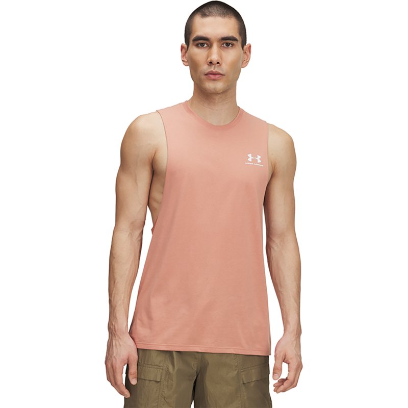 Stay cool while working out in the Under Armour Men's Sportstyle Left Chest Cut-off Sleeveless Top. This top is made from 60% cotton and 40% polyester super-soft, cotton-blend fabric for all-day comfort. The generous, cut-off style armholes allow for added mobility and range of motion. Under Armour Men's Sportstyle Left Chest Cut-off Sleeveless Top Canyon Pink, Small - Men's Athletic Performance Tops at Academy Sports
