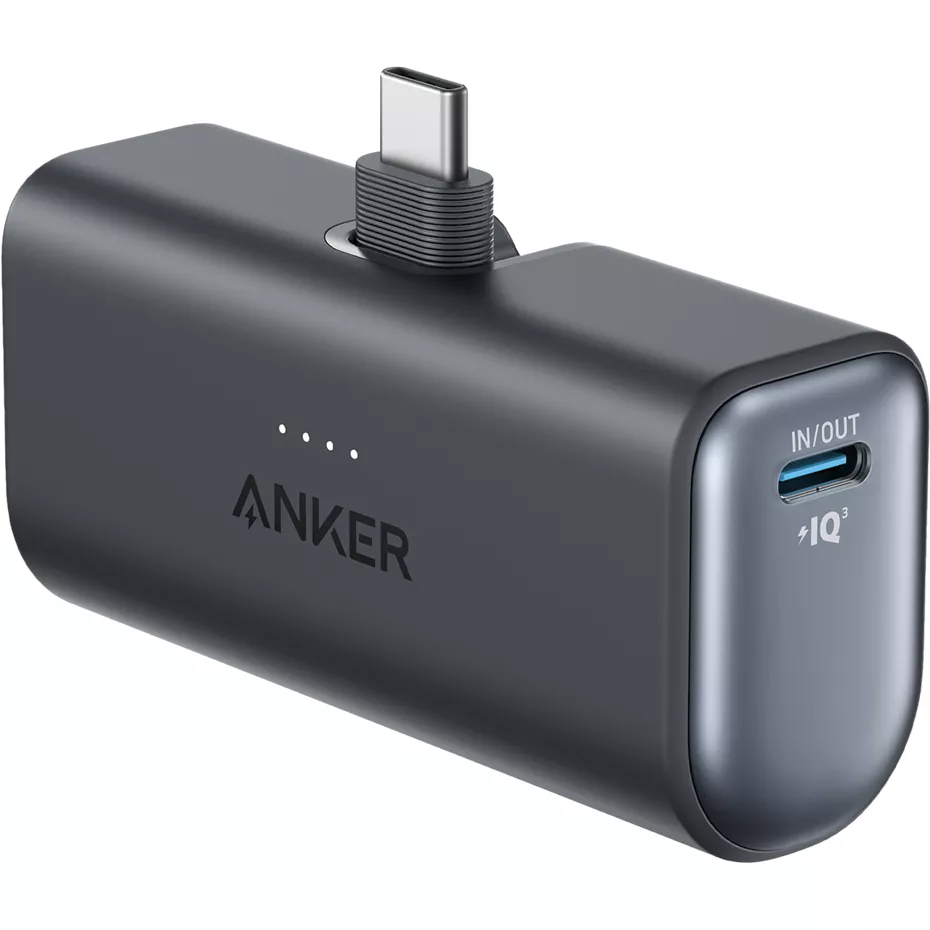 Keep your devices charged while on the go with the Nano 22.5W Power Bank with Built-In USB-C Connector. Made in part from post-consumer plastic, this compact portable power bank is both sustainable and powerful. The 5,000mAh battery features a built-in USB-C charging connector so you don't have to carry an additional cable, making it easy for travel. Up to 22.5W of charging powers your smartphone with ease. And, 2-port high-speed charging allows you to charge up to 2 devices at once. | Anker Nano 22.5W Power Bank with Built-In USB-C Connector - Black | Verizon