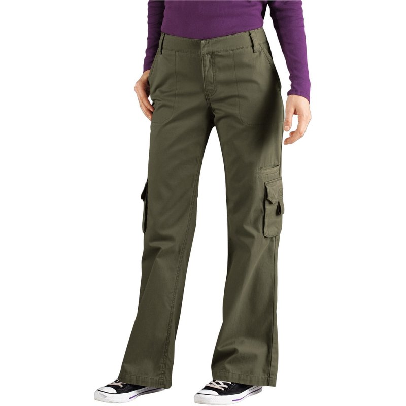The Dickies Women's Relaxed Fit Cargo Pant is made of peached, garment-washed 100% cotton twill for a soft feel and comfortable wear. This pant features cargo-style pockets with hook-and-loop closures, side pockets and back flat pockets with snap closures. Twill tape accents. Straight legs. Dickies Women's Relaxed Fit Cargo Pant Leaf Green, 16 - Ms Casual Pants at Academy Sports