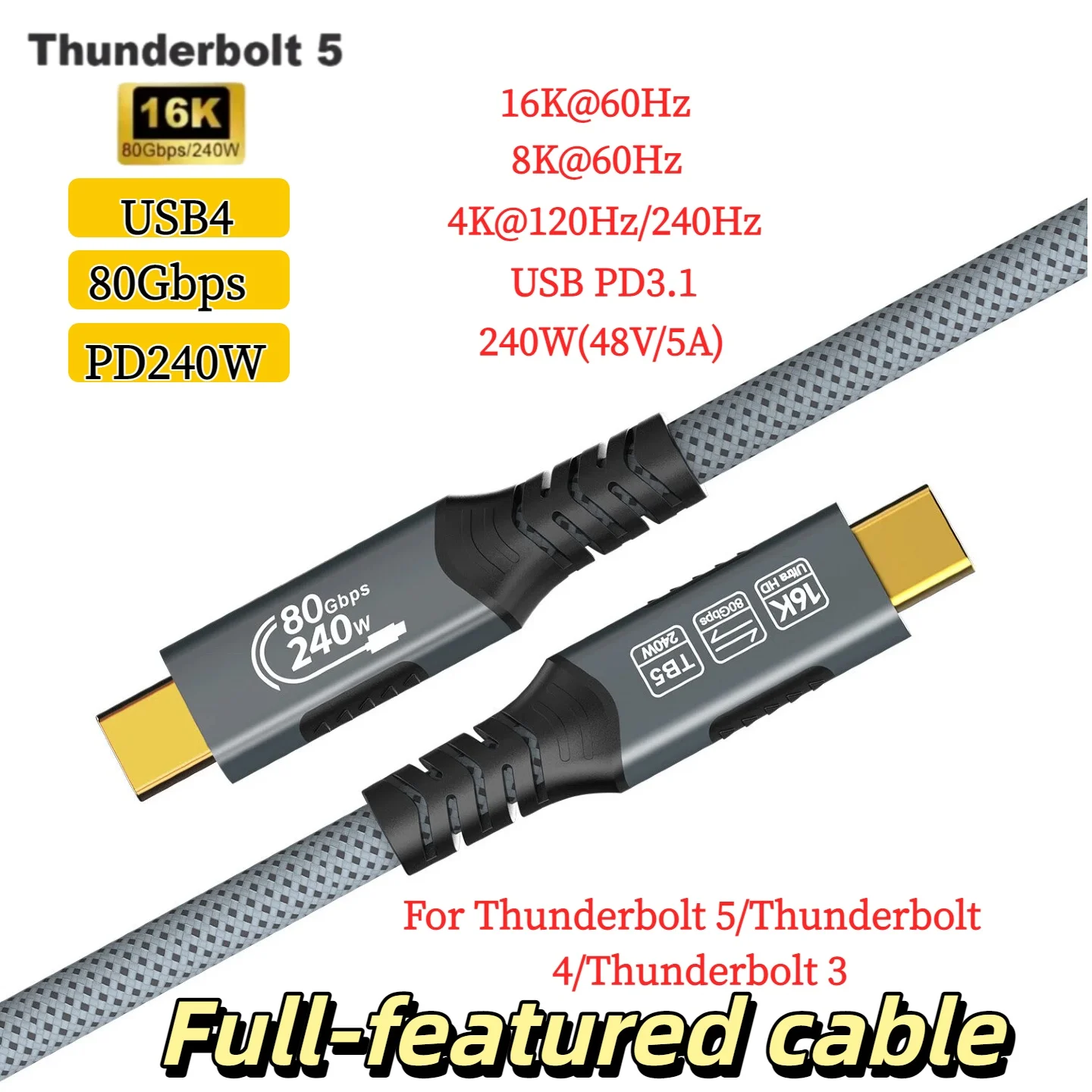 USB4 240w USB C to USB C Cable For Thunderbolt 4 Data Transfer and Charging For MacBook Pro/Air Del…