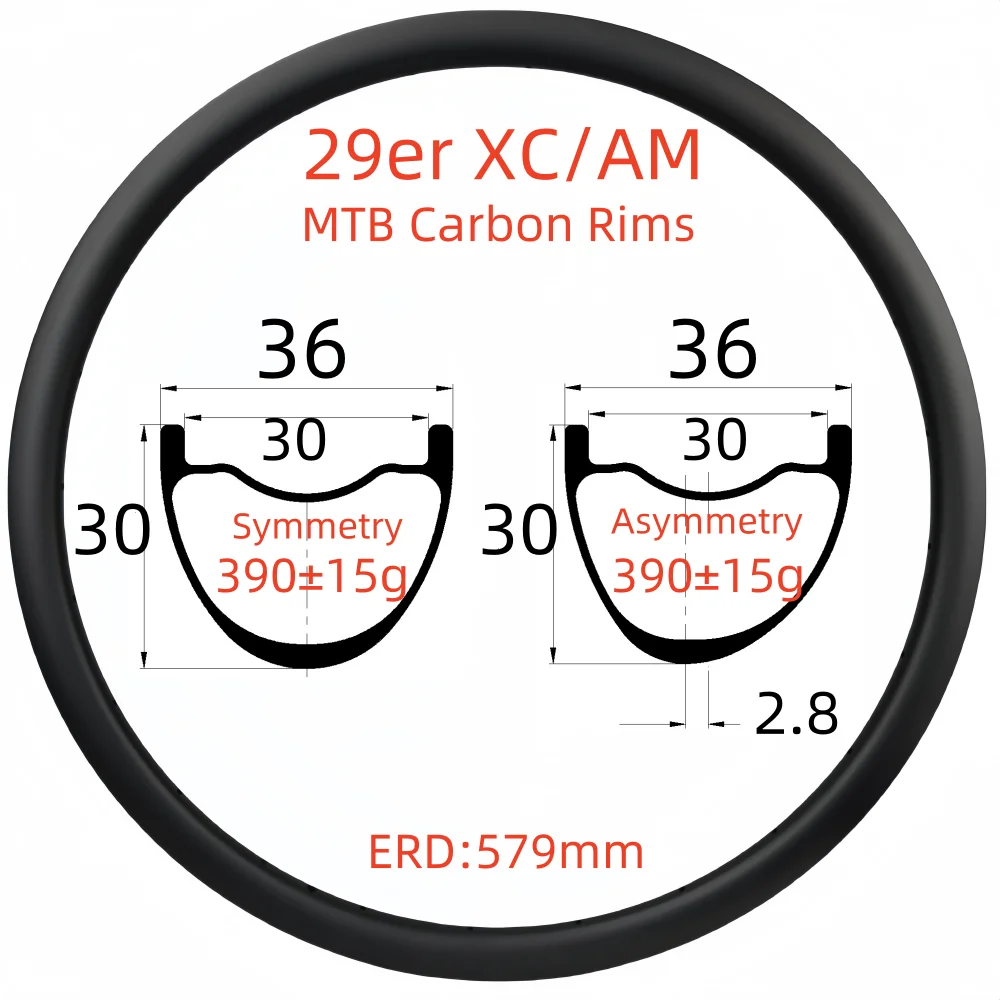 29er Carbon Rim 30mm Depth 30/33/36/38mm Wide Super Light XC MTB Carbon Rims UD Hookless/Tubeless C…