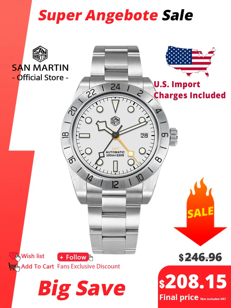 San Martin New 39mm NH34 BB GMT Automatic Mechanical Watch Sport Watch Sapphire Luminous Waterproof…