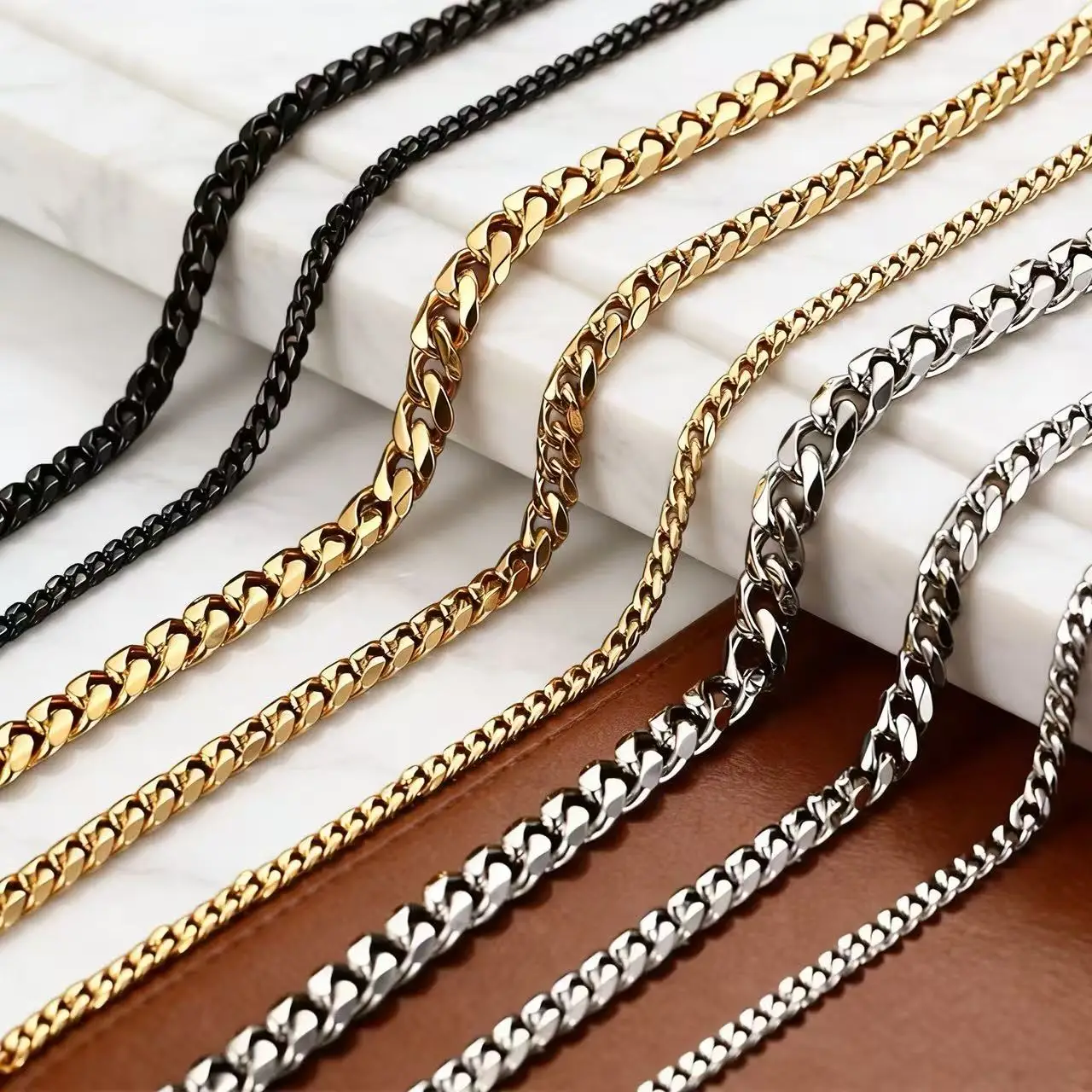YQ 3MM-13MM Stainless Steel Cuban Link Chain Necklace For Men Women Basic Punk Curb Link Chain Neck…
