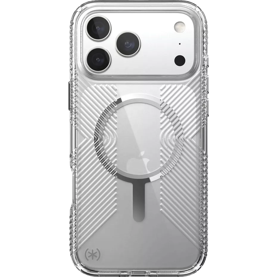Presidio Perfect Clear Grip Case with MagSafe for iPhone 17 Pro Max is built for sunshine and adventure, offering ultra-durable protection for your phone. This case provides up to 13-feet drop protection¹, a crystal-clear, anti-yellowing finish, and grippy no-slip inverted sides that keep your phone safe and stylish from the beach to the boardwalk. When dropped, Speck's Clear Impact technology compresses and cushions your phone, proven to absorb shock and resist damage to your device. The newly innovated no-slip inverted grips on the back of this super slim case provide durability and long-lasting grip for texting and photography. Our latest button design provides a more satisfactory click and a better tactile response. Presidio Perfect Clear Grip Case features built-in magnets designed to specifically work with all MagSafe accessories and raised bezel screen protection, this added bit of protection is designed to resist screen shatters or cracks for those times when your phone falls and lands face-down. Enjoy peace of mind knowing this product is covered by a manufacturer's lifetime warranty, protecting it against wear and damage for the lifetime of your device.¹Based on independent testing. | Speck Presidio Perfect Clear Grip Case with MagSafe for iPhone 17 Pro Max - Clear | Verizon