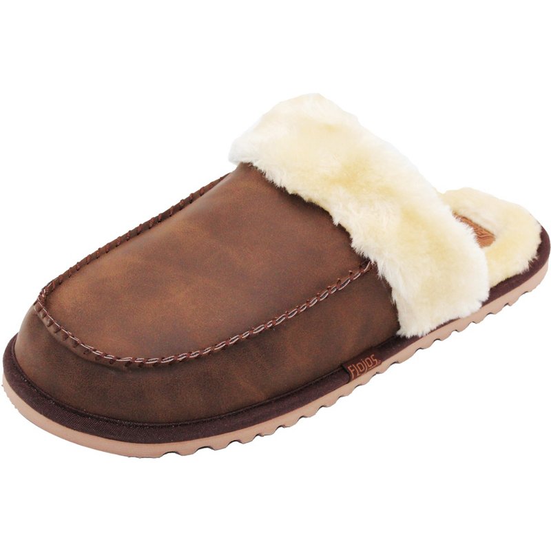 Take on the day in comfort and style when you slip on the Flojos Adults' Lynx Mule Slippers. The burnished faux leather uppers provide stylish and comfortable wear. The faux shearling trim, liners and socks offer softness and warmth. The padded footbeds supply a plush, cozy fit, while their slip-on construction encourages easy on and off. Flojos Adults' Lynx Mule Slippers Brown, 06 / 07 - Slippers at Academy Sports