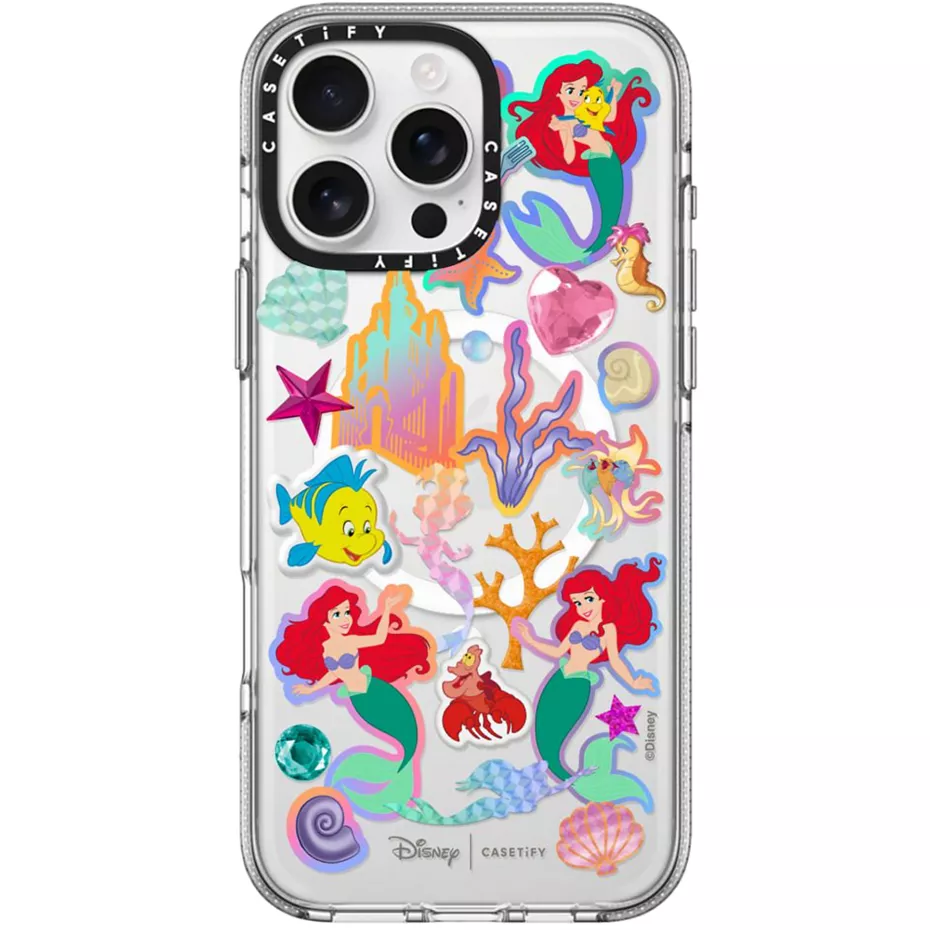 Embrace your inner Disney princess with Clear Case with MagSafe for iPhone 16 Pro Max. This collaboration blends iconic Disney magic with CASETiFY's renowned drop-defying protection. Each crystal-clear case, tougher and sleeker than ever, lets your unique style shine through while boasting 3x military-grade drop protection.¹ The UV Defender technology prevents yellowing, ensuring your case stays crystal clear. And because we believe in happily ever after for your phone and the planet, you can join the Re/CASETIFY™ program to give your old case a new life. Enjoy wireless and magnetic charging compatibility, tactile buttons, a raised bezel for screen protection, lifted camera ring for camera lens protection and easy charm attachment – all while showing off your favorite Disney Princess. Make every day magical with this enchanting collection.¹Based on independent testing. | Casetify Clear Case with MagSafe for iPhone 16 Pro Max - Ariel Stickermania | Verizon