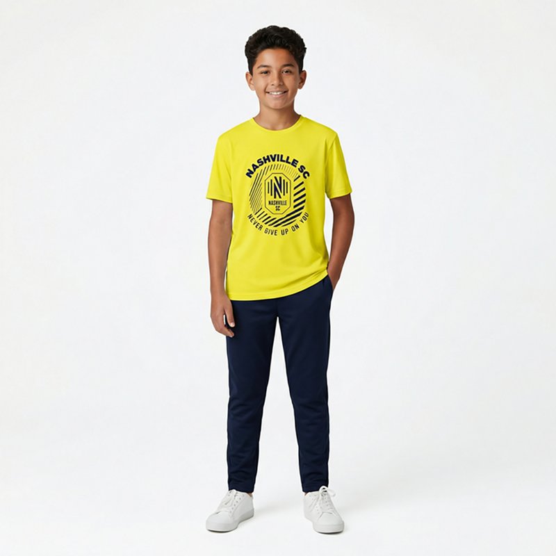 Cheer on your favorite team while wearing the Outerstuff Youth Nashville SC Shining Moment T-shirt. The 100% cotton jersey construction helps keep you comfortable throughout the day, while the screen-printed team graphic puts your fan spirit on display. Outerstuff Youth Nashville SC Shining Moment T-Shirt Gold, 14/16 Youth - Licensed Soccer at Academy Sports