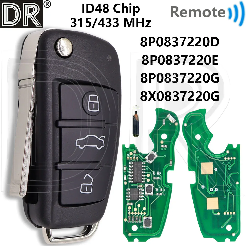 Great ID48 Chip 8XO837220D/8PO837202D/E/G 315/433MHz Car Remote Control Key For Audi TT A3 A4 S3 S …