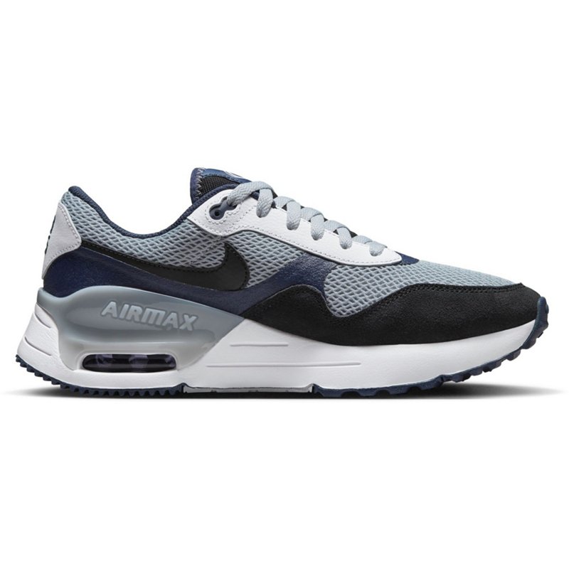 Show your school spirit when wearing the Nike Men's Penn State University Air Max SYSTM Shoes. Lightweight mesh uppers and Air Max heel pads provide a speedy ride, while team graphics put your fandom on proud display. Nike Men's Penn State University Air Max SYSTM Shoes Grey/Navy Blue, 8 - Men's Active at Academy Sports
