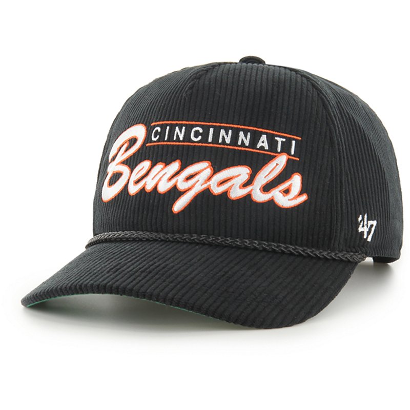 The Double Header â47 HITCH RF is a relaxed-fit version of '47 Brand's popular '47 HITCH with a snapback closure crafted from wide wale corduroy. Featuring script embroidery, embroidered side hit, braided visor rope, and a classic undervisor. '47 Men's Bengals Double Header Hitch Rf Cap Black - NFL Caps at Academy Sports