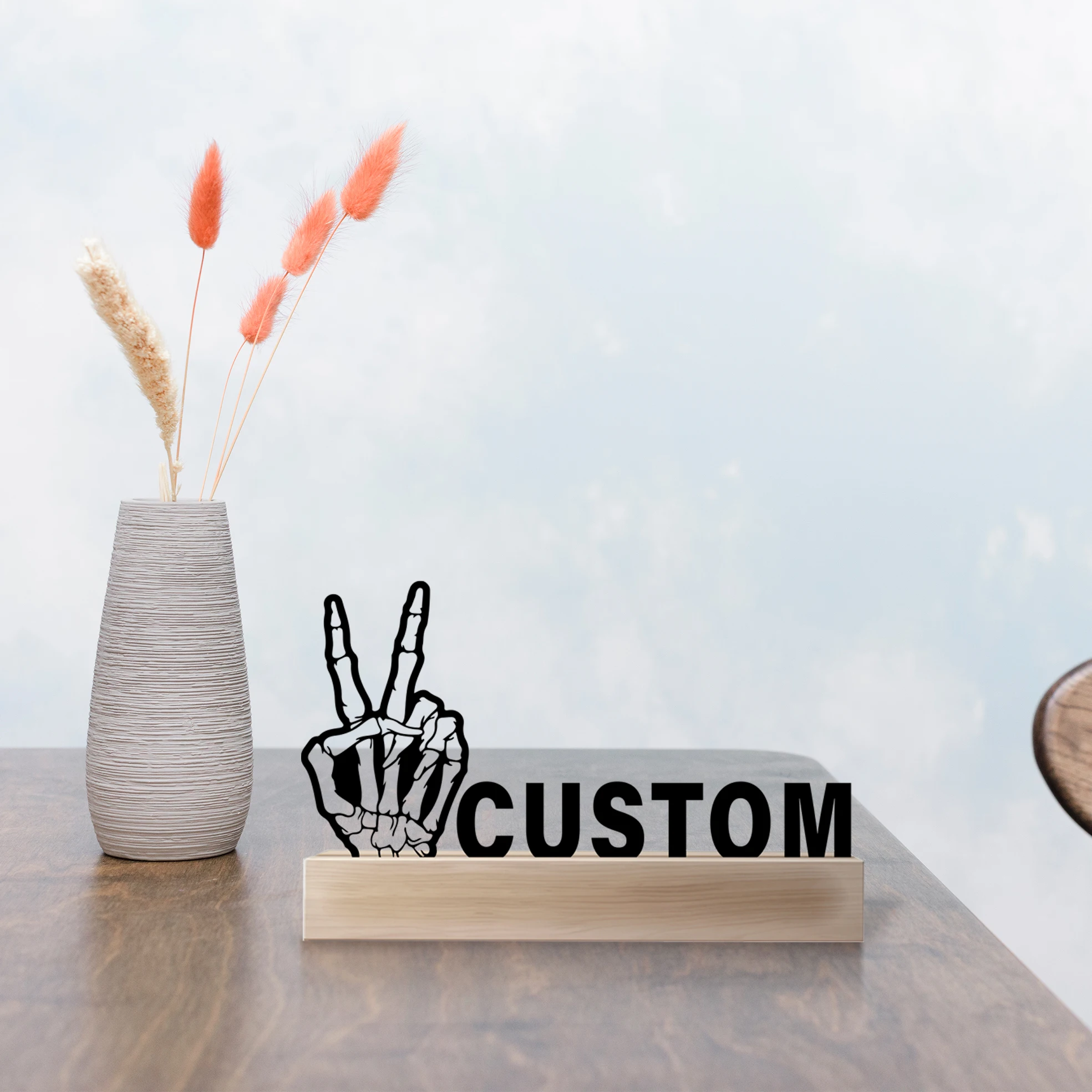 1pc Fashion Biya's skeletal hand Customized Name Metal Statue With Wood Base Iron Ornament Iron Scu…