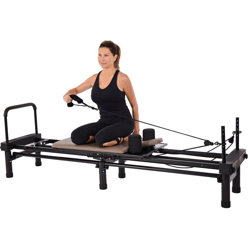 Develop and maintain a lean physique with the AeroPilates 651 Pilates Reformer. The padded platform and rebounder enable a range of pilates exercises with heavy-duty bungee cords for adjustable resistance. The cushioned foot bar, shoulder pads and headrest keep you comfortable while you work out, while the sturdy steel frame and non-skid supports ensure a stable base. The folding design enables compact storage between sessions. An included fitness DVD guides your training. AeroPilates 651 Pilates Reformer Gray/Black - Exercise Accessories at Academy Sports