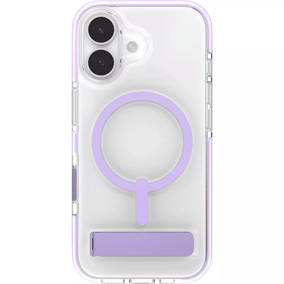 The Santa Cruz Snap Clear Kickstand Case with MagSafe for iPhone 17 shows off your new phone with pops of color. This case has up to 13-feet drop protection¹, a sturdy finger-nail friendly kickstand that folds back flush with the case, and an integrated camera button. To top it all off, it's also compatible with MagSafe and most wireless chargers. The case is made in part with up to 64% post-consumer recycled content² and strengthened with Graphene³, a material harder than diamond, yet more elastic than rubber, and up to 200x stronger than steel. The slim, lightweight design fits easily in your pocket and comfortably in your hand. The anti-scratch coating helps the case maintain its beauty over time. The textured edges provide a no-slip grip and it comes with a manufacturer's limited lifetime warranty, covering wear or damage during the lifetime of the device for which it was purchased.¹Based on independent testing.²Recycled material is certified through a third-party mass balance allocation process. Shipping and handling fees apply. See zagg.com for details.³See ZAGG.com/graphene FAQ for more details. | Zagg Santa Cruz Snap Clear Kickstand Case with MagSafe for iPhone 17 - Lavender | Verizon