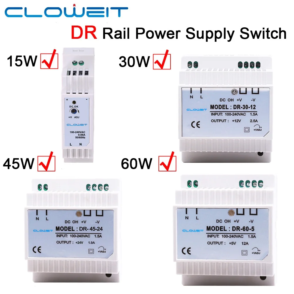 15W 30W 45W 60W Single Output 5V 12V 15V 24V Industrial Din Rail Power Supply Switch DR-15 DR-30 DR…