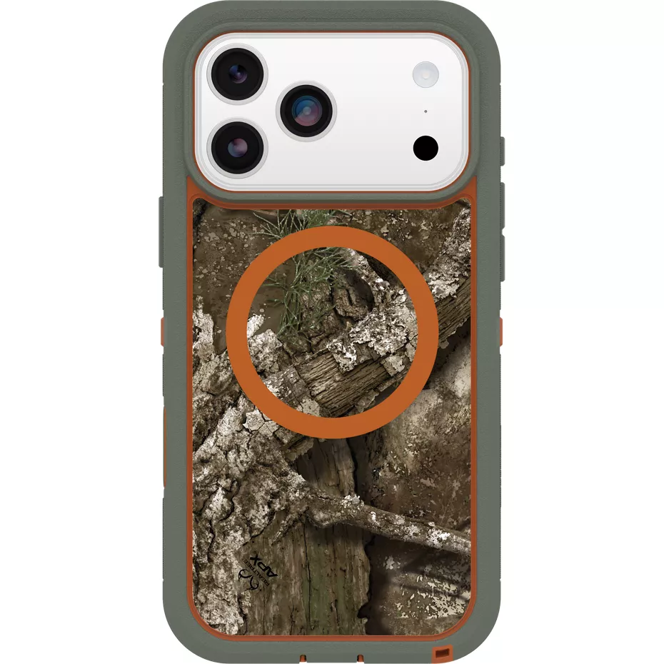 The Defender Series XT Pro Clear Case with MagSafe for iPhone 17 Pro Max provides rugged protection in a sleek, see-through package. The clear design puts your device on display and the dual-layer is built to 7X military standard drop defense¹, guarding your phone against drops, dirt, scrapes, and bumps that come with an active lifestyle. The thinner, pressure-fitted frame keeps your device secure inside, while rubber edges provide a comfortable grip and absorb shock. Built-in magnets work flawlessly with MagSafe accessories. This case contains a minimum of 45% recycled content, features port covers to stop dirt and dust from creeping in, and has raised edges for added camera and screen defense. It also features built-in anchors for connecting phone straps and charms and an integrated camera control button for seamless interaction. Plus, it is backed by a manufacturer's limited warranty, so this case promises lasting beauty and protection for your phone.¹Based on independent testing. | OtterBox Defender Series XT Pro Clear Case with MagSafe for iPhone 17 Pro Max - RealTree APX | Verizon