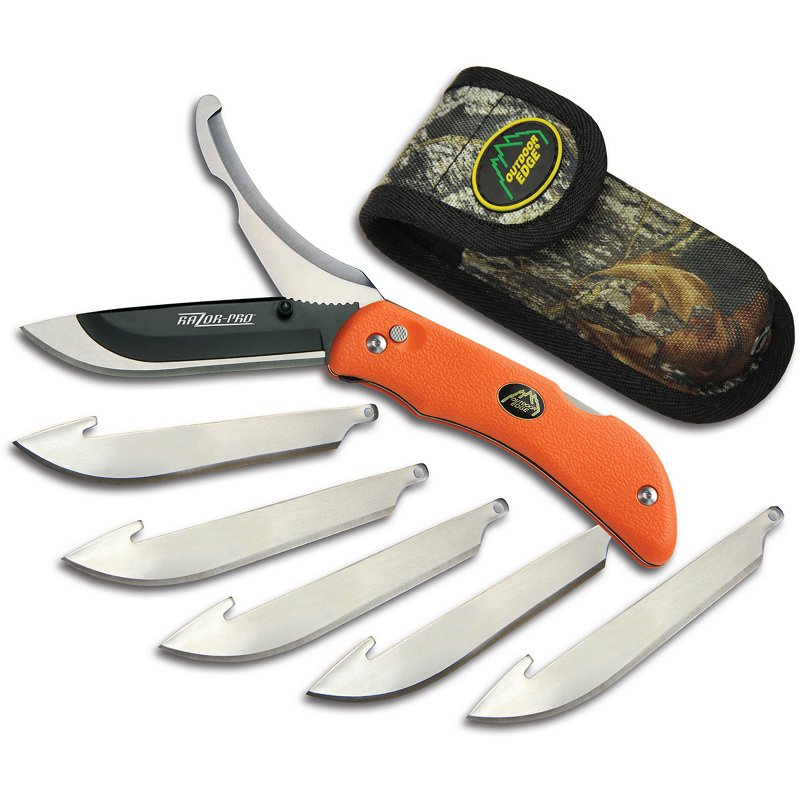 Handle a variety of camping and hunting chores using the Outdoor Edge Razor Pro Replacement Razor Knife, which comes with 6 replaceable razor knife blades, so you always have a sharp blade on hand. A separate gutting blade offers added versatility, while the high-visibility rubberized TPR handle offers a nonslip grip. 3.5" blade length (knife). 3.1" blade length (gutting blade). 8" overall length. Nylon sheath included. Outdoor Edge Razor Pro Replacement Razor Knife - Folding/Pocket Knives at Academy Sports