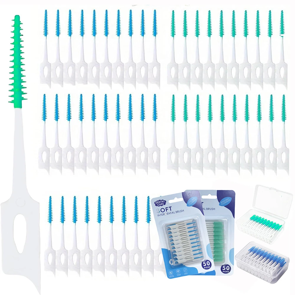 40~150PCS Silicone Interdental Brush Disposable Dental Floss Picks Cleaning Between Teeth Soft Hilo…