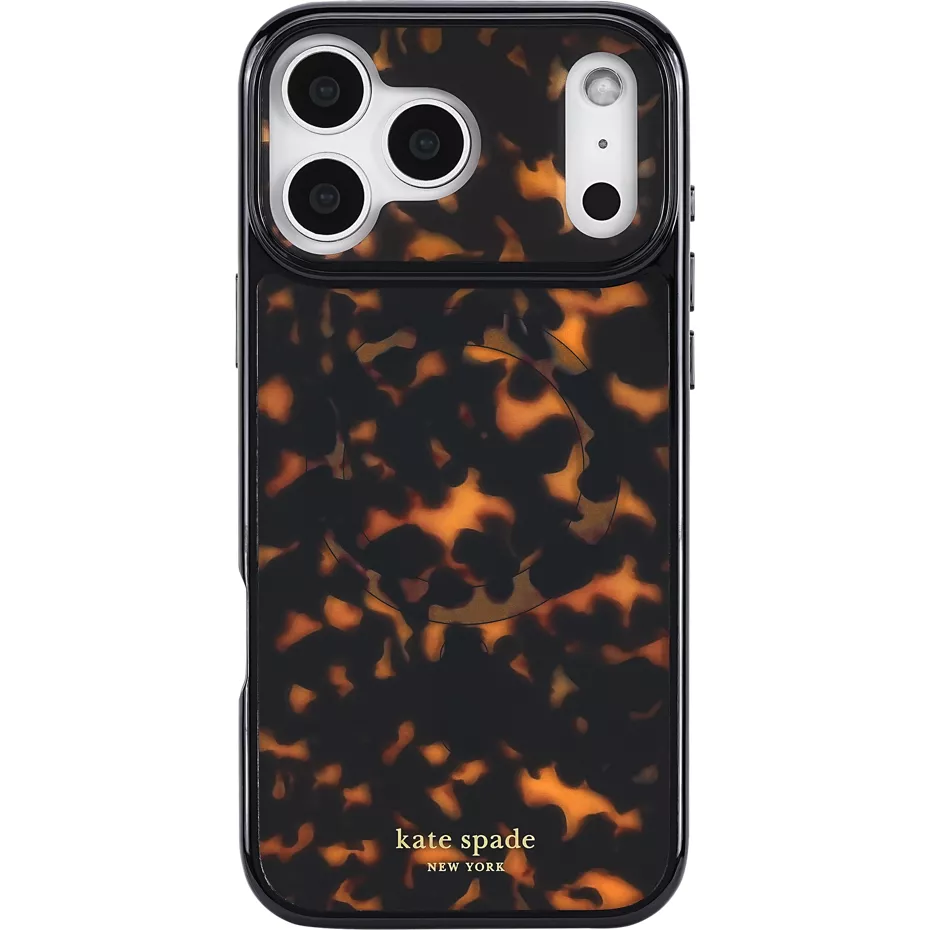 You've found your new best friend with the Tortoise Case with MagSafe for iPhone 17 Pro Max. This case is ideal for everyday use, featuring a classic tortoiseshell design with gold accents. Accidents happen, so protect your phone with up to 12 feet drop protection¹. This stylish case features strong built-in magnets for MagSafe compatibility and is made with anti-scratch coatings to keep it looking new. It also features UV protection to prevent yellowing and stays clear. This product is covered by a lifetime manufacturer's warranty.¹Based on independent testing. | Kate Spade Tortoise Case with MagSafe for iPhone 17 Pro Max | Verizon