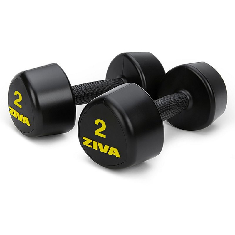 Keep your weights exactly where you need them with the ZIVA Studio Tribell Dumbbells â Pair. These studio-grade dumbbells feature a 3-point design that doesn't roll away. The textured RPU coating and knurled handles provide non-slip grip assistance for safe and comfortable lifting. ZIVA Studio Tribell Dumbbells â Pair Black, 12 Lbs - Free Weights/Bulk at Academy Sports