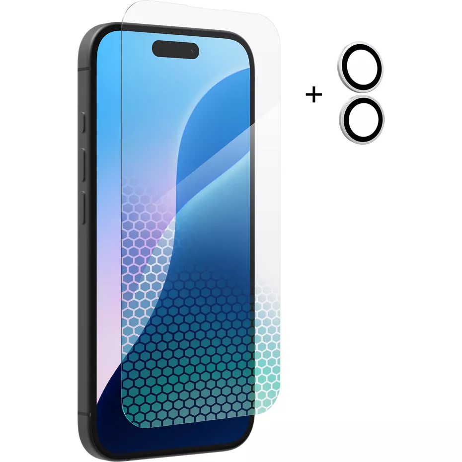 Protect your screen from cracks and scratches with the InvisibleShield Glass XTR4 Screen Protector + Camera Lens Protector for iPhone 16. Made in part with up to 30% recycled glass, the screen protector is also fortified with Graphene and Hexiom technology, making it up to 11 times stronger than traditional glass screen protection.¹ RPF60 technology filters blue light to help improve eye comfort and sleep, while anti-reflective technology enriches colors on your screen. ClearPrint and ion exchange technology prevent smudges and scratches. And, built-in antimicrobial treatment protects your screen from dirt and germs. Glass Elite Anti-Reflective Camera Protector. This lens protector provides powerful scratch protection with aluminosilicate glass. And, it stays clear with ClearPrint surface treatment. Easy application. The included Applicator Tool makes it easy to install your screen protector without any bubbles or bumps. And, the new adhesive installs smoothly over dust, making it practically invisible. ¹ Tests conducted by a 3rd party independent lab; tested up to 11X stronger than traditional glass screen protection. | Zagg InvisibleShield Glass XTR4 Screen Protector + Camera Lens Protector for iPhone 16 - Clear | Verizon