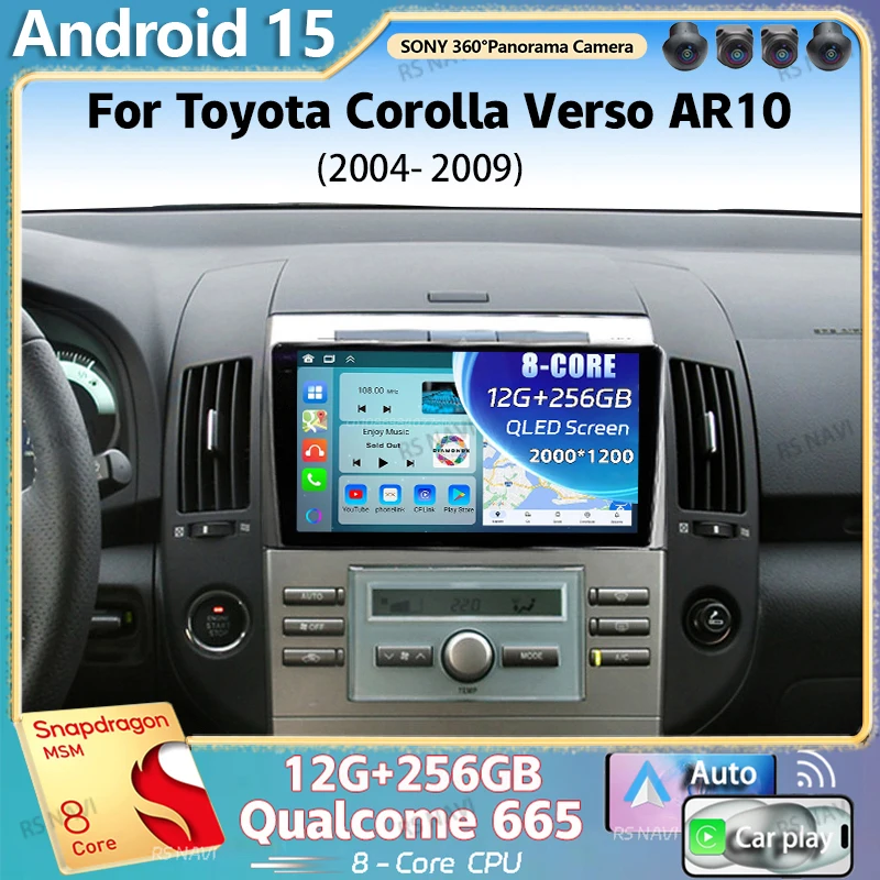 Android 15 For Toyota Corolla Verso AR10 2004-2009 2K QLED Android Car Radio Multimedia Video Playe…