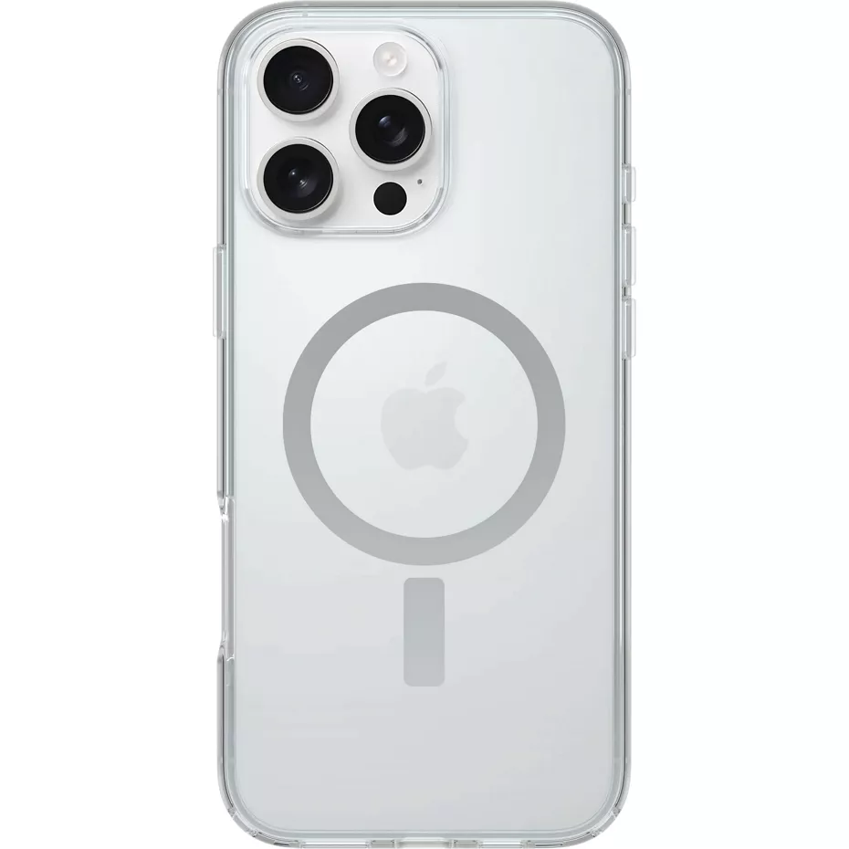 Shield your phone from drops, bumps and dings with the Symmetry Series Clear Case for iPhone 16 Pro Max. Made in part with up to 40% recycled plastic, this ultra-slim, clear case makes it easy to show off your device. The rigid design and reinforced corners for added shock absorption. The raised edges protect your screen and camera from cracking and shattering. Built-in anchors make it easy to connect phone straps and charms. Tactile buttons feel just like your phone's and don't impede the use of your phone. And, built-in magnets snap securely into MagSafe chargers and accessories so you don't have to remove your case. OtterBox tough. OtterBox puts their cases through rigorous testing. OtterBox Certified Drop+ Protection is backed by 24+ tests and 238+ hours of testing so you know you are getting a tough-as-nails case.¹ ¹ Based on independent testing. | OtterBox Symmetry Series Clear Case for iPhone 16 Pro Max - Clear | Verizon