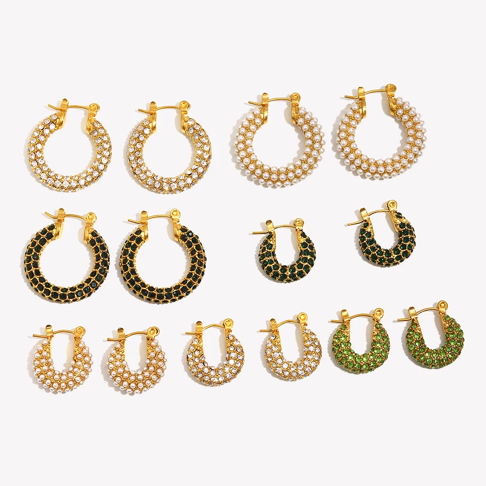 E.B.belle New Delicate Quality Luxury 3A Zircon Hoop Earrings Stainless Steel Jewelry 18K Gold Plat…