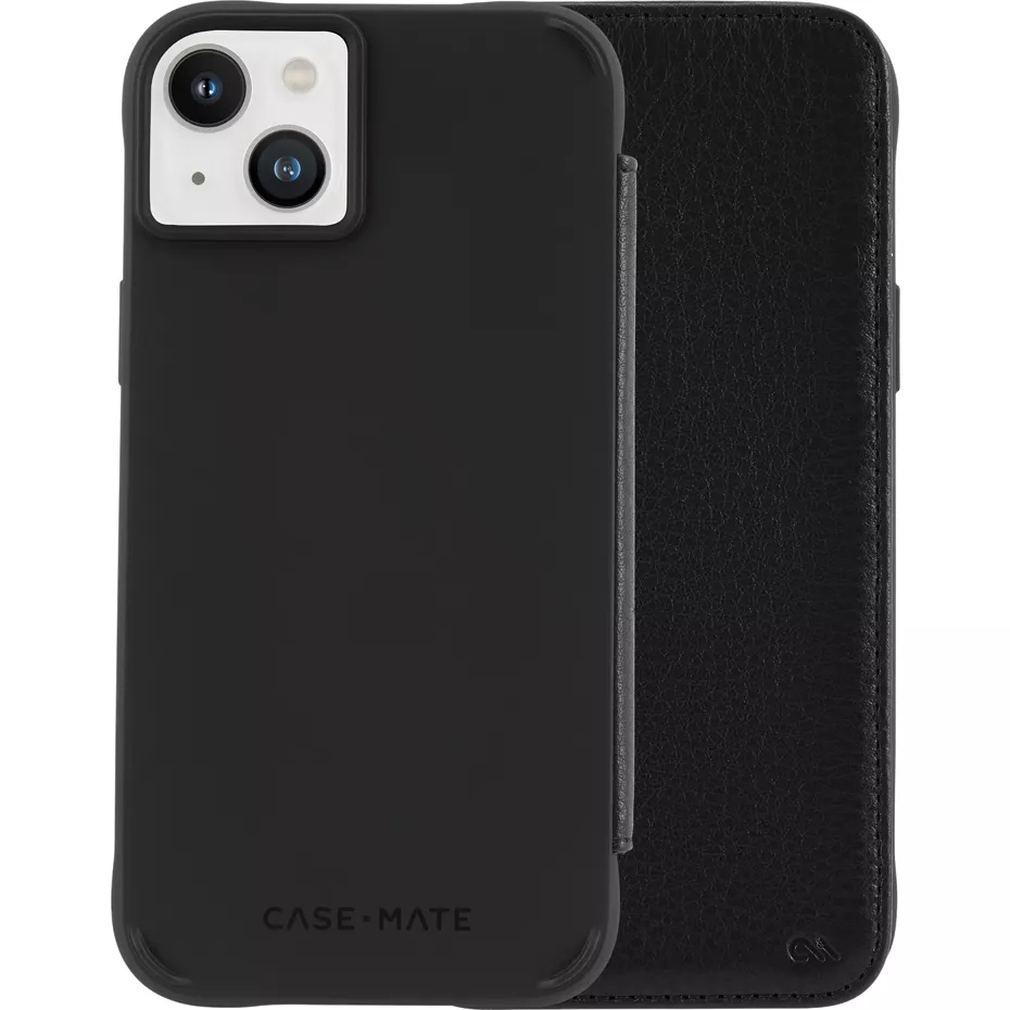 Keep your essential cards close at hand with the Wallet Folio Case with MagSafe for iPhone 14 Plus. Made in part with recycled plastics, this well-crafted wallet case provides up to 10 feet of drop protection.¹ Built-in slots hold cards and cash, so you have everything you need on hand. Antimicrobial protection reduces the buildup of dirt and germs. And, it's MagSafe compatible, so you don't have to remove your case to charge your phone. ¹ Based on independent testing. | Case-Mate Wallet Folio Case with MagSafe for iPhone 14 Plus - Black | Verizon