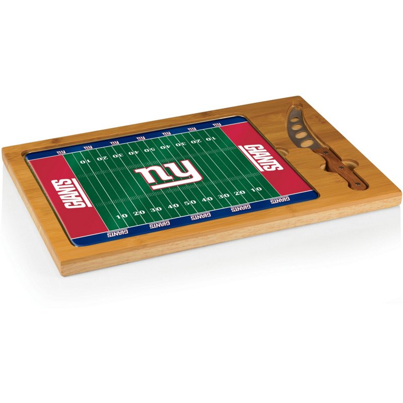 Proudly display your love of the Giants when serving guests with this Picnic Time New York Giants Icon Glass-Top Cutting Board and Knife Set. The rubberwood and bamboo cutting board features a tempered-glass tray insert that can be used as either a serving tray or an additional cutting board. You can easily serve guests with the included stainless-steel cheese knife, which fits snugly into the carved-out section of the wood base. Picnic Time New York Giants Icon Glass-Top Cutting Board and Knife Set Beige - Pro Licensed Novelty at Academy Sports