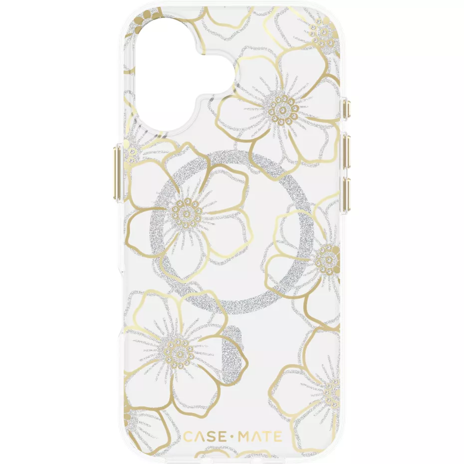 Add a bit of dazzle to your phone with the Floral Gems Case with MagSafe for iPhone 17.This glittering case features reflective gold and silver shimmer florals with gemstone accents for extra shine. Anti-scratch coatings and UV protection keep your case looking like new, while up to 12 feet of drop protection shields against drops, bumps and dings.¹ And, with strong built-in magnets for MagSafe you can charge your phone without removing your case. Backed by a manufacturer's lifetime warranty, this case promises lasting beauty and protection for your phone.¹Based on independent testing. | Case-Mate Floral Gems Case with MagSafe for iPhone 17 - Gold | Verizon