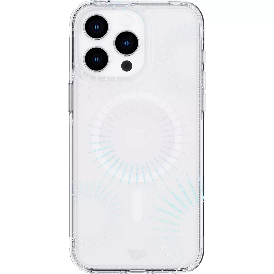 Add a bit of sparkle to your phone with the Evo Sparkle Case with MagSafe for iPhone 15 Pro Max. Made with up to 60% biodegradable materials, this scratch-resistant case features a holographic shimmer effect for some extra-sparkle. The non-slip grip helps you keep hold of your phone while on the go. The sturdy design provides up to 12 feet of impact protection and enhanced camera protection against cracks and scratches.¹ Advanced antimicrobial technology reduces microbes up to 99.99% in up to 24 hours.² Easy-to-press buttons are ultra-responsive, so your case doesn't interfere with the use of your phone. And, it has built-in magnets, so it's compatible with MagSafe chargers and accessories. ¹ Based on independent testing. ² Advanced antimicrobial technology protects the case against odor, staining or material degradation-causing microbes. | Tech21 Evo Sparkle Case with MagSafe for iPhone 15 Pro Max - Lunar | Verizon