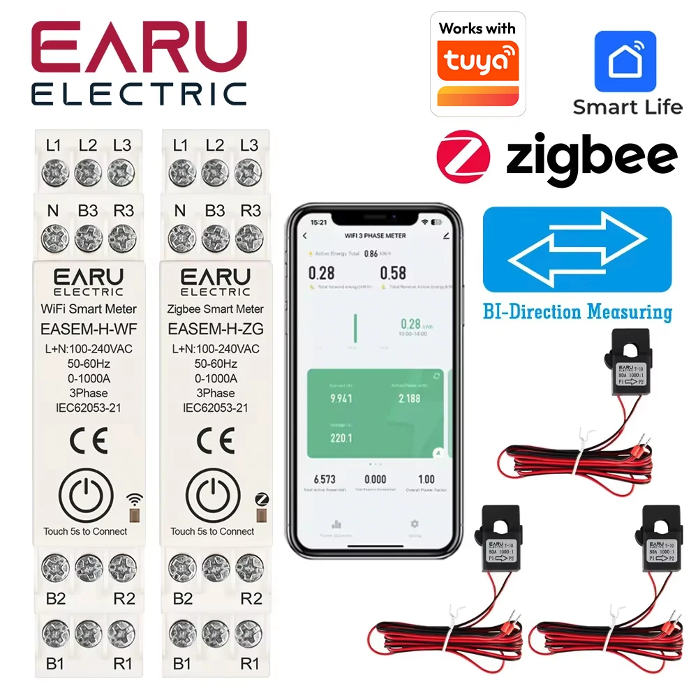 Tuya Smart WiFi ZigBee Energy Meter with 3 CT Clamps for Solar PV System Power Production Consumpti…