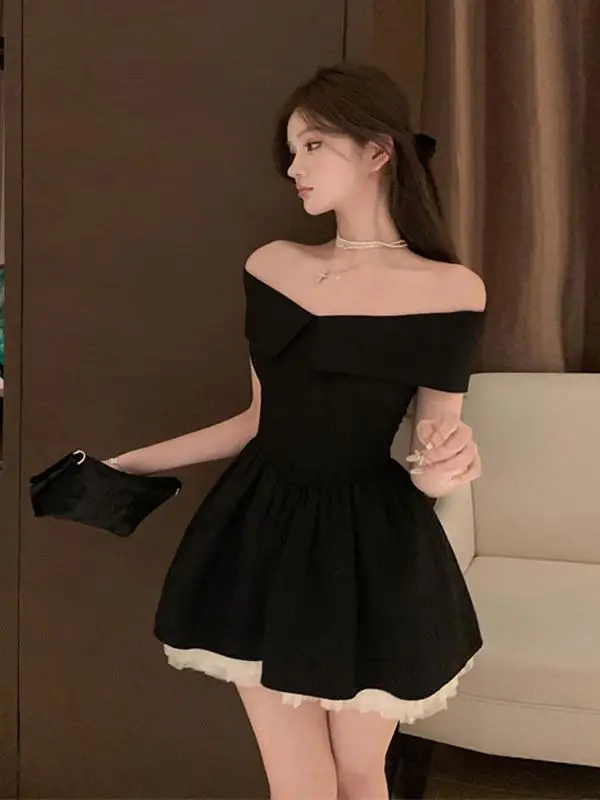 Hebe Sle Fibone Skirt Dr Women's Summer Princ Puffy Gown Little Bla Dr Cotton ort Sve Slim Fit X-ape
