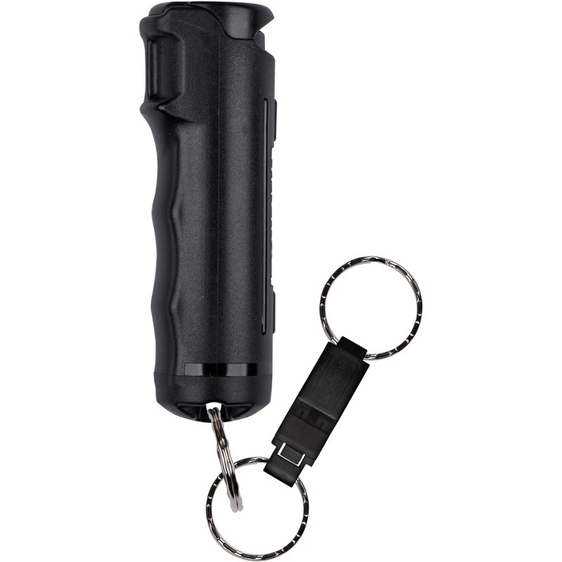 Protect yourself while on the go with the SABRE Keychain Pepper Gel with Safety Whistle. This portable pepper spray contains 25 shots of a specialized pepper gel designed to protect at range while eliminating blowback. The ergonomic finger grip improves your aim and control while a flip top safety prevents accidental discharges. An included whistle helps you call for help with an audible range of 750 feet. SABRE Keychain Pepper Gel with Safety Whistle Black - Personal Safety at Academy Sports