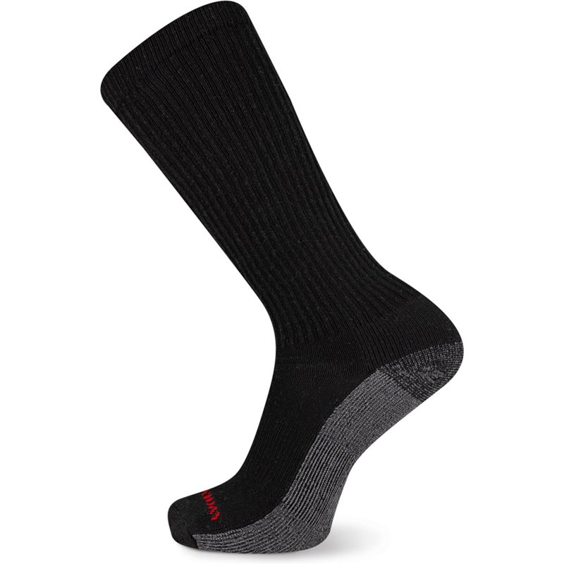 Stay comfortable during your work day with the Wolverine Men's Cotton Steel Toe Over the Calf Socks 6-Pack. The 46% cotton, 36% polyester, 17% nylon and 1% spandex construction offers a soft and stretchy feel all day, and the embroidered WOLVERINE logo across the top displays your brand pride. The ribbed stay-up top ensures a snug fit, and the smooth toe seems provide comfortable wearing. Wolverine Men's Cotton Steel Toe Over the Calf Socks 6-Pack Black, Large - Western And Thermal Socks at Academy Sports
