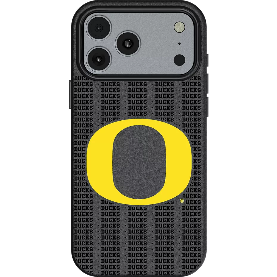 The Text Backdrop Case with MagSafe for iPhone 17 Pro Max lets you show your school spirit with a stylish, officially licensed University cell phone case. These leatherette cases protect your phone while showcasing your school spirit. These cases and their graphics are built to withstand being in a pocket or purse all day long. The case is made from premium leatherette and has a microfiber lining to protect your phone. It provides up to 4.9 feet of drop protection¹ and is compatible with both wireless charging devices and external magnetic accessories. The Text Backdrop Case with MagSafe includes a one-year manufacturer's warranty against manufacturing defects.¹Based on independent testing. | Keyscaper Text Backdrop Case with MagSafe for iPhone 17 Pro Max - University of Oregon | Verizon
