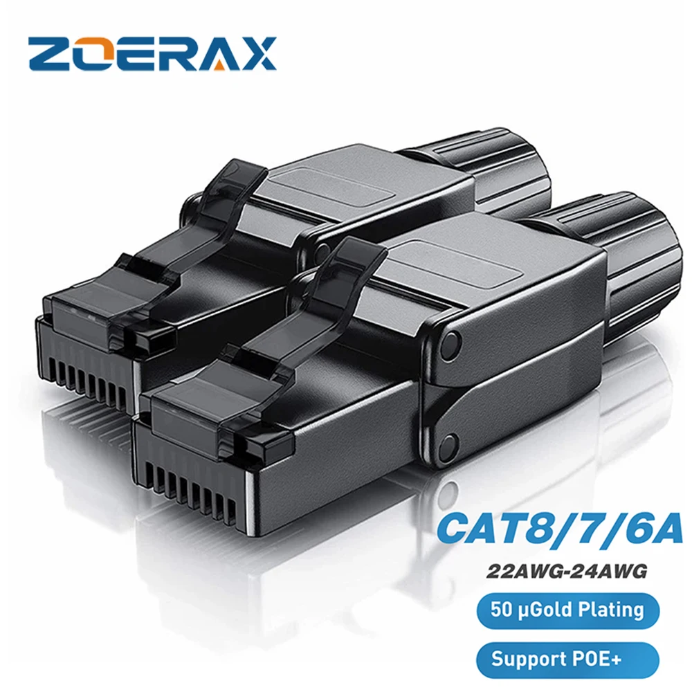 ZoeRax Cat8 Cat7 Cat6a Connectors RJ45 Tool Free Industrial Ethernet Easy Jack Shielded RJ45 Modula…