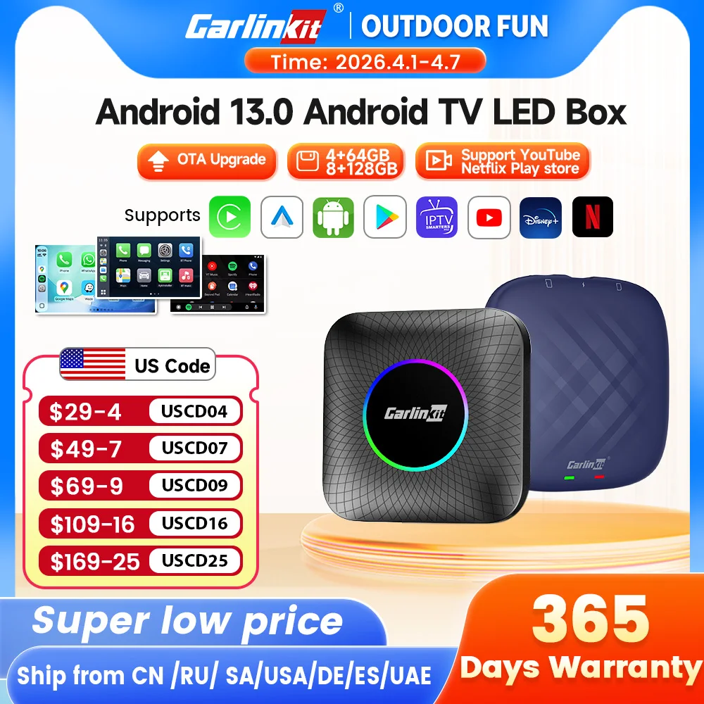 Carlinkit Ai Box Android 13 Led Wireless Android Auto & CarPlay Smart Tv Box QCM6225 Support Youtub…