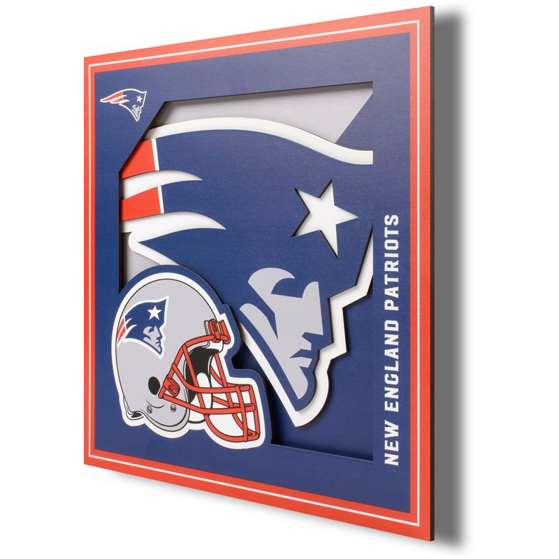 Put team pride on display in your home gym, office or sport cave with the YouTheFan New England Patriots 3-D Logo Series 12 in x 12 in Wall Art. This ready-to-hang wall decor is made with multiple stacked layers of MDF, creating a 3-D effect that makes your team's logo pop. A "floating" mount stands out from the wall for extra dimension. YouTheFan New England Patriots 3-D Logo Series 12 in x 12 in Wall Art Blue/Red - Pro Licensed Novelty at Academy Sports