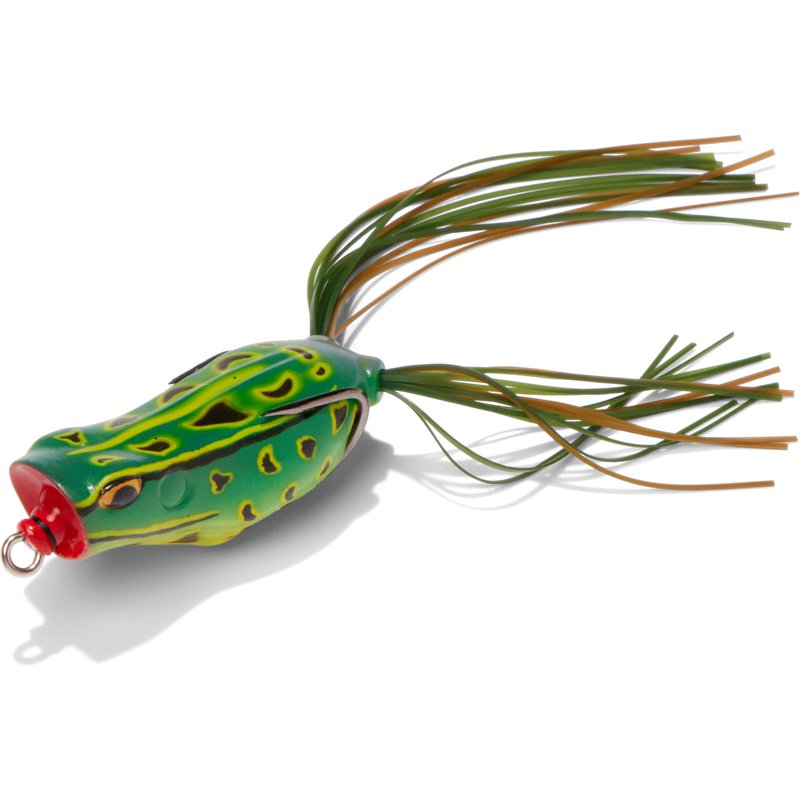 Add excitement to your fishing gear with the H2OX Poppin' Frog Bait. This popping bait has a lifelike body and 3-D legs that create a popping motion that helps trigger freshwater bass to bite, while the 1/0 Mustad double hook keeps them on the line. 1/4 ounce. 2 inches long. H2OX Poppin' Frog Bait Green - Frsh Wtr Soft Plastic at Academy Sports