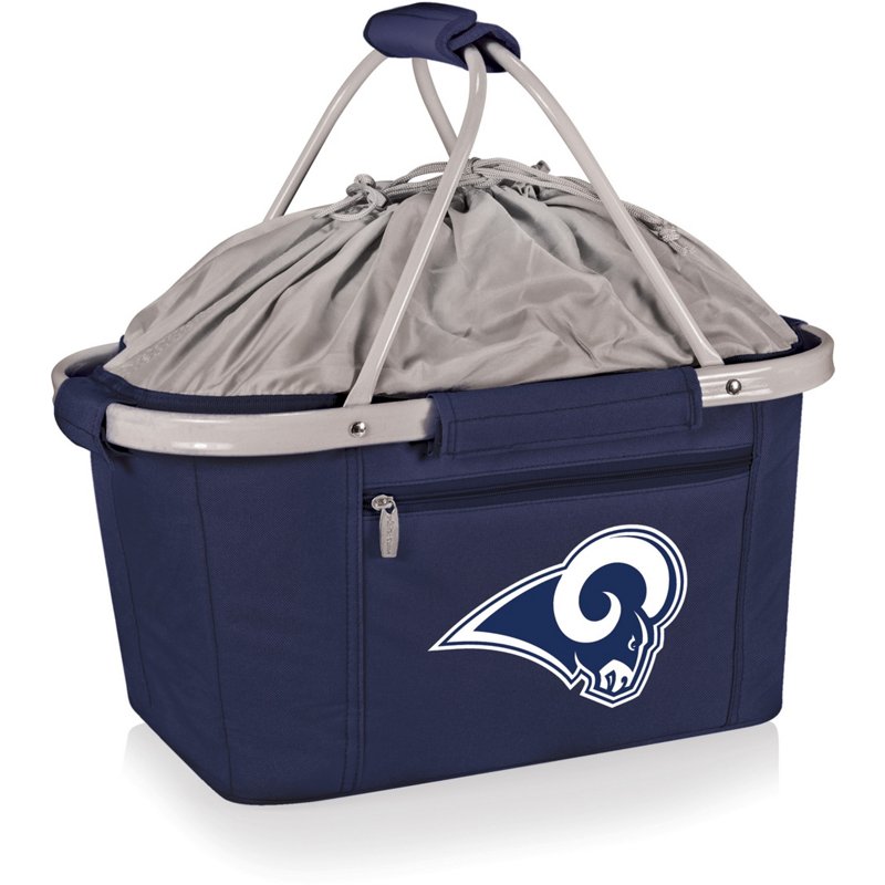 When you go to the market or the beach, the Picnic Time Los Angeles Rams Metro Basket Collapsible Tote affords easy carrying of your items and shows off your pride in the Rams. The polyester canvas over the sturdy aluminum frame offers durability, while the expandable drawstring top is available to accommodate larger items. When you're finished, the tote can be collapsed to save storage space. Picnic Time Los Angeles Rams Metro Basket Collapsible Tote Blue/Navy Blue, 26 Cans - Pro Licensed Novelty at Academy Sports