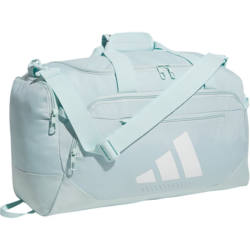 Bring along your athletic gear with the adidas Defender V Small Duffel Bag. The 100% polyester construction stands up to wear and tear, while the multiple zippered pockets give you plenty of space for the essentials. The adjustable shoulder strap and luggage trolley strap make transport a breeze. adidas Defender V Small Duffel Bag Bright Green/White - Athletic Sport Bags at Academy Sports