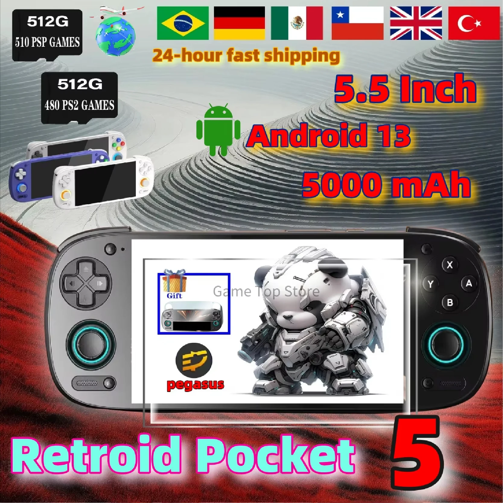 Retroid Pocket 5 Retro Handheld Game Console Video Game Consoles RP5 SD865 8+128G Android13 5.5 Inc…