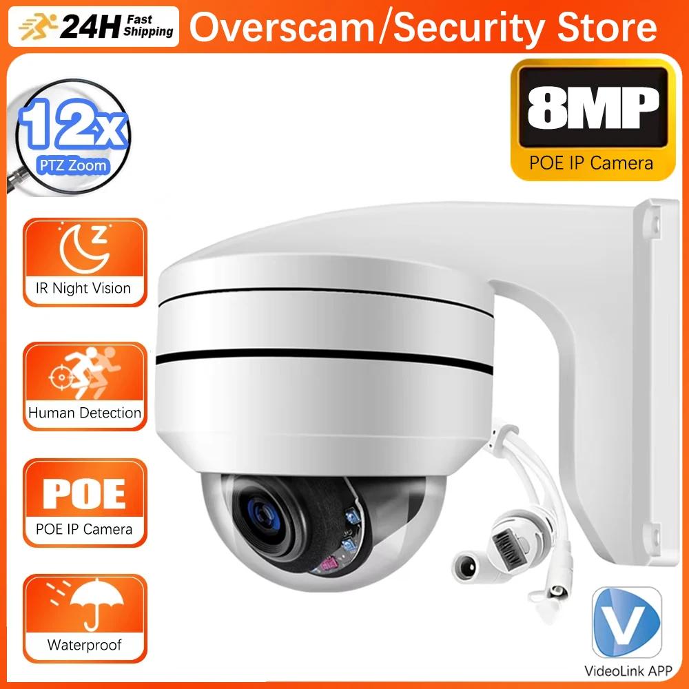 8MP PTZ POE Camera 12X Optical Zoom Ai Human Detection Alarm Vechicle Detection Night Vision 80m Vi…