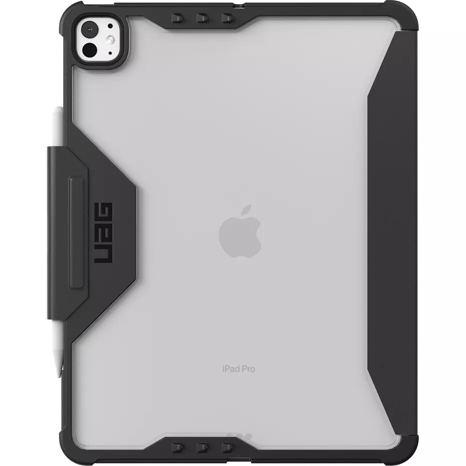 The Plyo LT Folio Case for iPad Pro 13-inch (M5)/(M4) offers a superb fusion of a sleek, translucent design and rugged, everyday protection. Engineered for the modern user, this case features a featherlight armor shell combined with an impact-resistant soft core and air-soft corners, providing reliable safeguarding against drops, dings, and surface scratches. You can confidently place your device on any surface thanks to scratch-resistant skid pads and a raised screen surround that delivers an extra layer of defense for your display. The intelligent folio cover not only enables auto wake/sleep functionality to conserve battery life but also conveniently transforms into an adjustable stand for hands-free viewing or typing. Its clear back design allows the elegance of your tablet to show through, while an integrated, secure pencil holder ensures your stylus is always within reach. Meeting military drop-test standards¹, this case delivers formidable protection without compromising on style or functionality. This product is backed by a manufacturer's limited lifetime warranty.¹Based on independent testing. | UAG Plyo LT Folio Case for iPad Pro 13-inch (M5)/(M4) - Ice/Black | Verizon