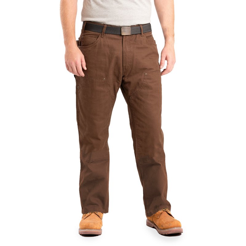 Take on tough jobs with Berne Men's Highland Double-Front Duck Pants. The duck fabric is triple-stitched for extra durability, and the double-front leg panels stand up to challenging work conditions. Plenty of pockets keep your tools convenient. Brass rivets provide reinforcement and a classic look. Berne Men's Highland Double-Front Duck Pants Bark, 50" - Men's Work Bottoms at Academy Sports