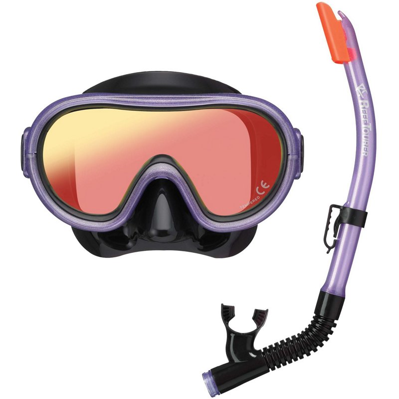 Your child can explore underwater environments with the Reef Youth Tourer Single Window Mask And Snorkel Set. This hypoallergenic mask features a wide lens made of durable tempered glass, with a mirrored finish to enhance color vision underwater. The quick-adjust clips allow for easy setup while ensuring a secure, comfortable fit. Reef Youth Tourer Single Window Mask And Snorkel Set Black/Purple - Swim And Diving Accessories at Academy Sports