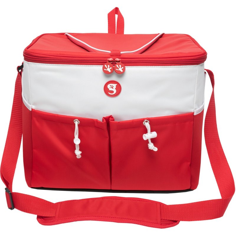 Enjoy your chilled beverage all day with the Geckobrands Large 24 Can Cooler. The premium-coated polyester construction offers long-lasting use, and the neoprene-padded carry strap provides a custom fit for comfortable transportation. The 2 large neoprene side pockets, 2 front pocket pouches and a rear zip pocket allows you to conceal items, and the antimicrobial PEVA lining enhances the durability. Geckobrands Large 24 Can Cooler Red/White - Prsnl Coolrs Soft/Hard at Academy Sports